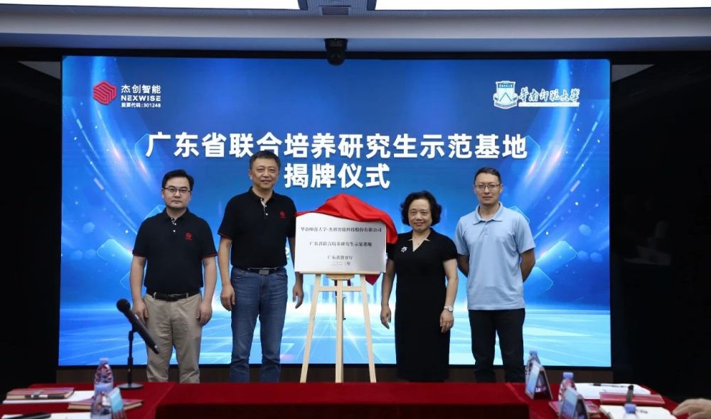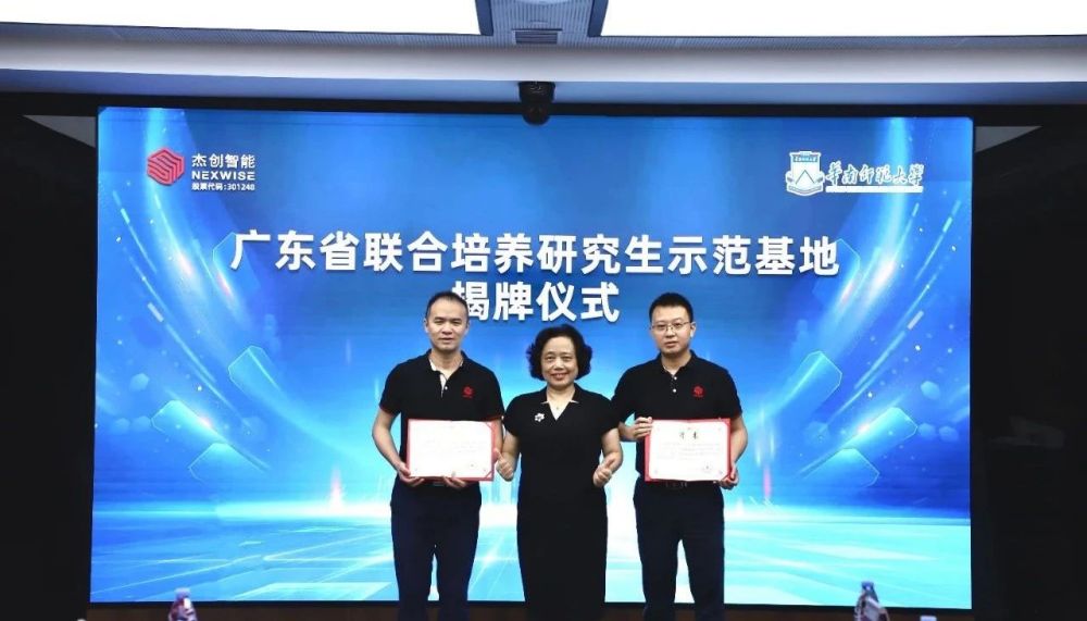 10月18日,杰创智能与华南师范大学(以下简称华师)举办了“广东省联合培养研究生示范基地”揭牌仪式,将在联合培养研究生、产学研融合等方面展开全方位合作,推动人才培养。