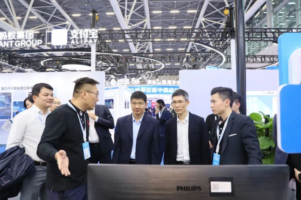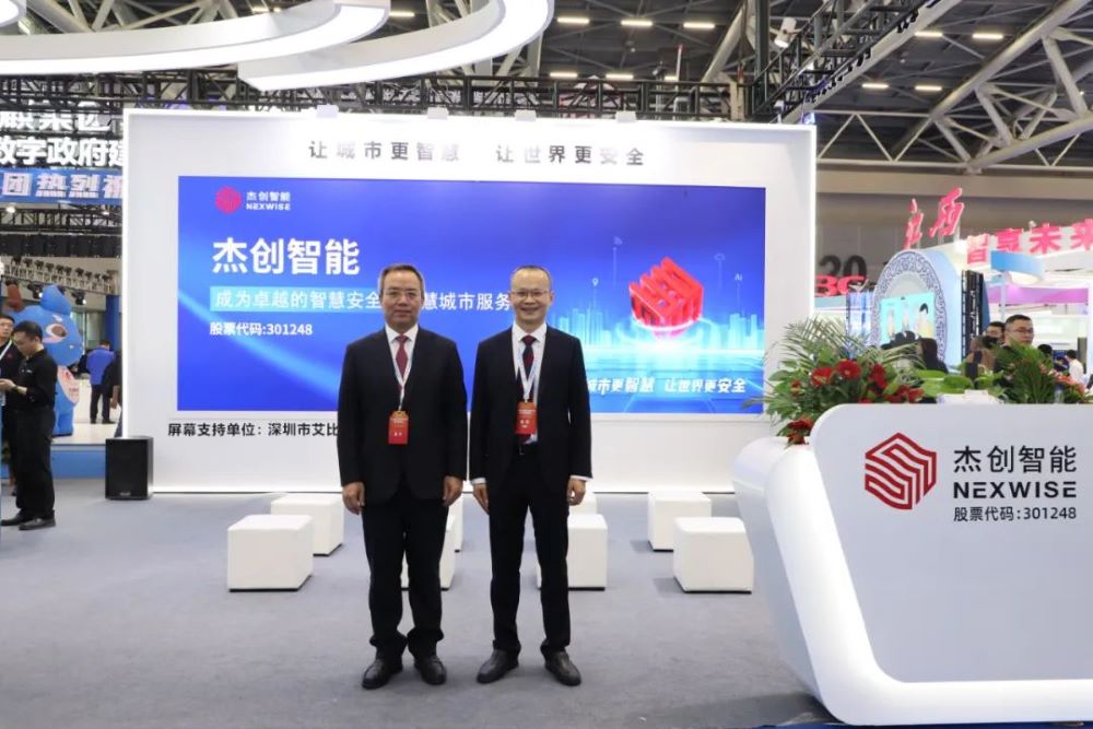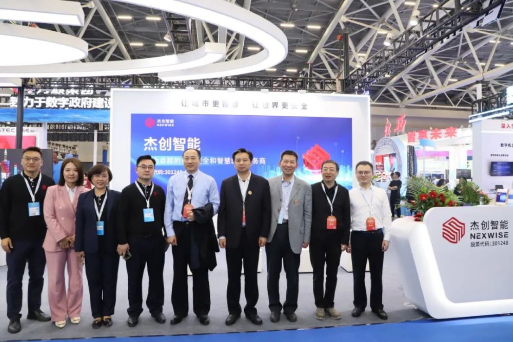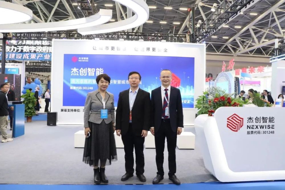 杰创智能展位吸引了诸多领导和嘉宾,其中,广东省揭阳市委副书记、市政府党组书记、市长支光南,安徽省数据资源管理局党组书记、局长朱诚,广东省政府接待办公室秘书处处长胡圣满,番禺区政府杨少华副区长,黄埔区政数局局长王薇等相关领导莅临杰创智能展位指导交流,杰创智能董事长孙超对各领导的莅临指导表示热烈欢迎,并热情介绍了公司参展的创新应用成果。