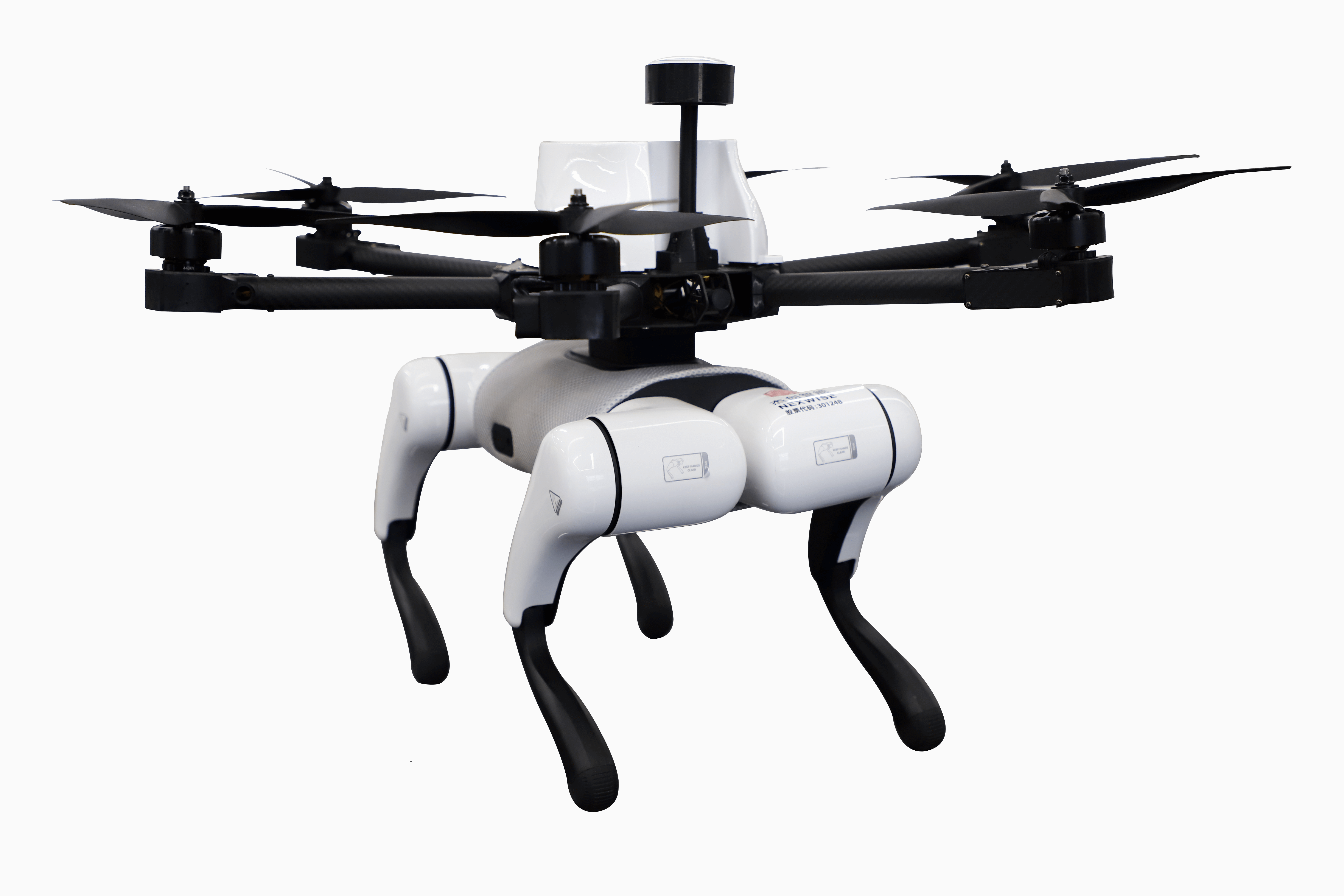 飞天机器狗是首款深度融合机器狗与无人机的具身智能装备,集陆地行走和空中飞行于一体能在复杂的天气和地形中稳定作业,执行目标搜救、应急物资运输等任务。在消防救援场景中飞行组件可垂直升空携带机器狗本体快速抵达搜救楼层,着陆平台后机器狗可携带消防装备及应急物资穿越坍塌建筑残骸,AI红外视觉系统快速穿透烟雾识别受困人员所在位置,提供更安全更高效的救援解决方案。